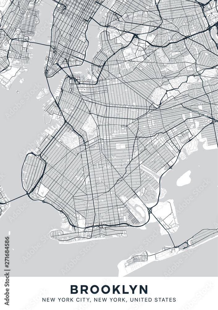 Large Brooklyn City Map Print Wall Art Printable Prints